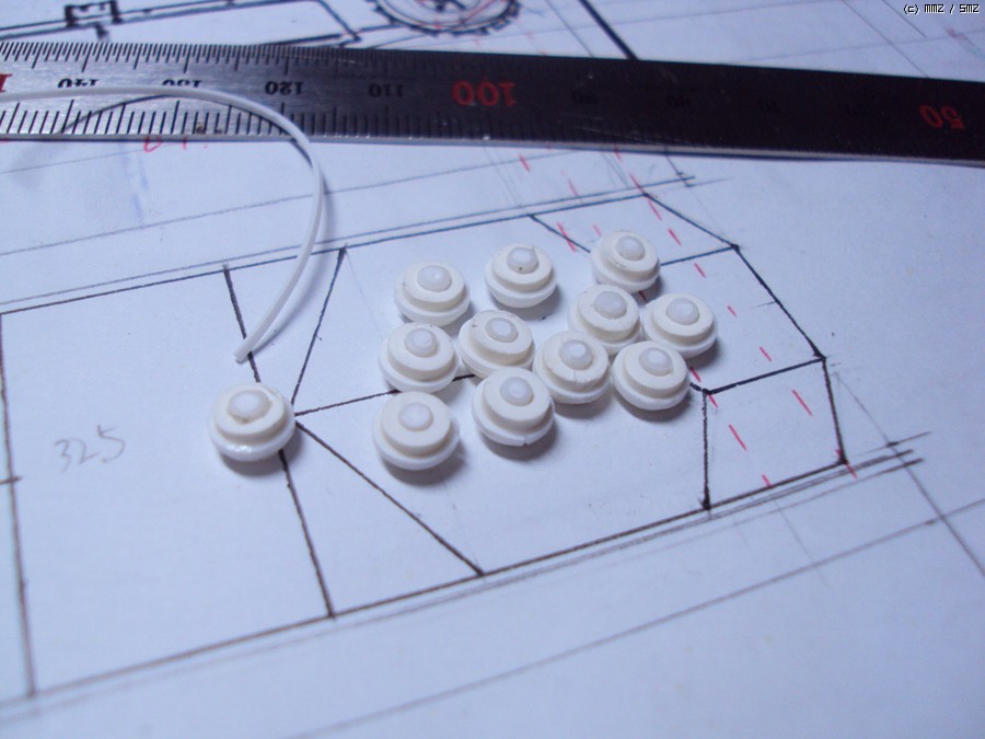 차체 하부에 부착하면 이렇게, 로드 휠이 완성 됩니다. 사진만으로는 이 부분의 정확한 디테일이 파악이 안되어 제작중인 FT-17 전차의 로드휠을 참조하여 만들어 봤습니다.