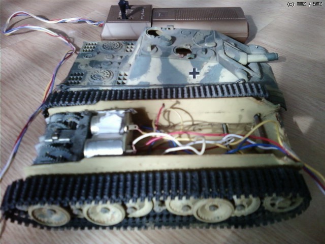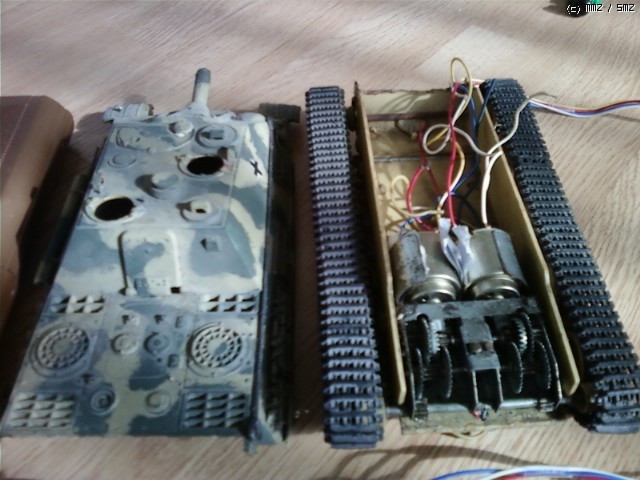 제가 1975년에 산 롬멜습격포전차(당시 이름, 지금은 야크트판터)입니다. 기어박스가 그대로 있고 모터가 아직도 작동됩니다만 전선 연결 부위가 끊어지는 바람에 모터만 아카데미 것으로 바꿔주었습니다. 리모콘 조종기는 합동과학 것이 없어진지 오래되어 아카데미 것으로 바꿨습니다. 고무 재질 트랙이 튼튼해서 지금도 잘 굴러 다닙니다.