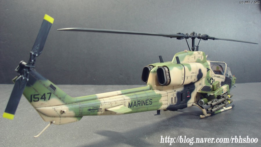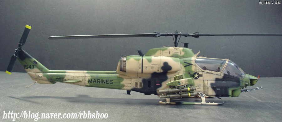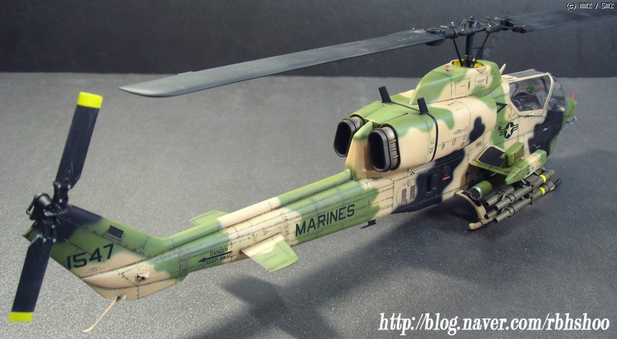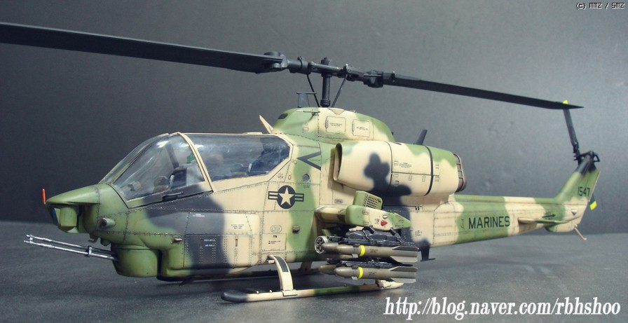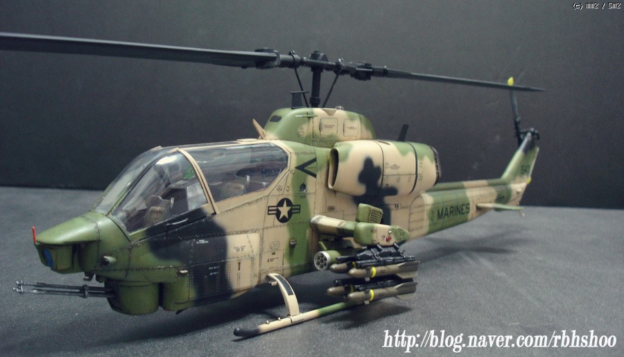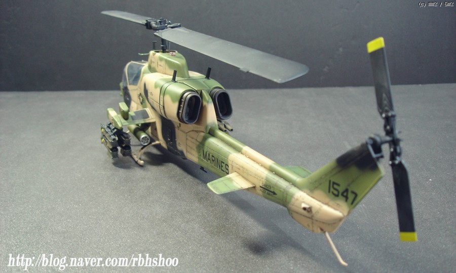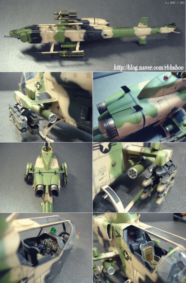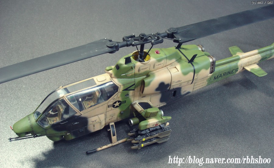 킷의 위장은 다들 처음 보실건데 터키군의 위장이며 데칼을 구하지 못하여 터키군에 파견 나가있는 미해병대로 생각해 주세요^^ 그래서 골드 코브라에 없는 데칼로 3대 분의 헬기 킷에서 데칼을 가져왔으며 부족한 부분은 스텐실을 하였습니다.