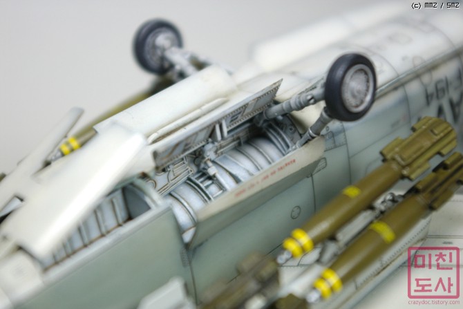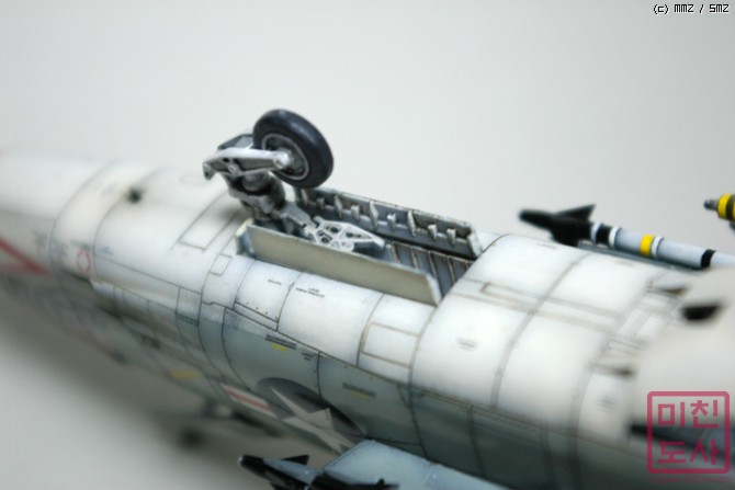 앞바퀴와 수납부, 옆의 미사일의 띠까지... 튀게 해봤습니다.