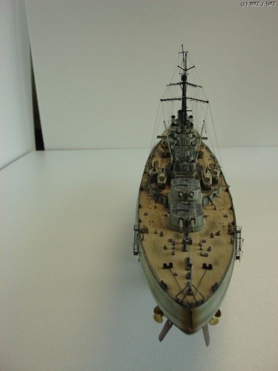선체 앞부분과 함교부분 근접사진 입니다. 굴곡부분이 많은 함교둘레 난간붙이기가 아주 어려웠습니다. 갑판에 먹선 넣기는 그 당시에는 할줄을 몰라 생략을 했고, 대신 군데군데에 짙은 갈색 파스텔을 적용해서 단조로움운 느낌을 줄이려고 했습니다.