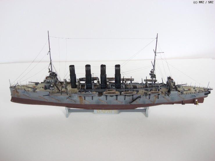 두번째로 보여드릴 함선은 구 러시아의 전노급 경순양함 Varyag 입니다. 러일전쟁당시 인천앞바다에서 일본해군과 전투를 벌이다 전세가 기울자, 투항을 거부하고 스스로 침몰(자침)한 함선입니다. 즈베즈다에서 나온 킷을 사용했습니다. 품질은 고만고만 하더군요.