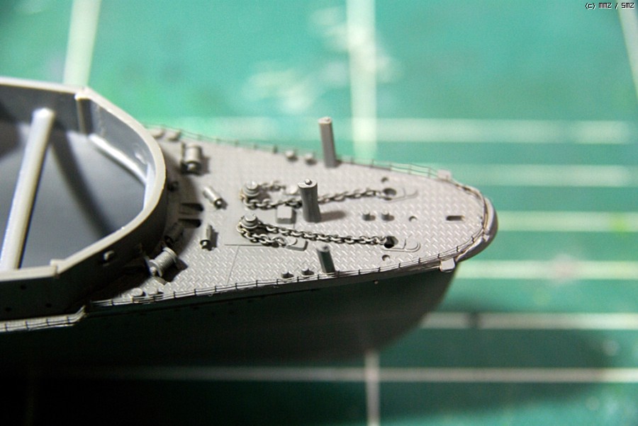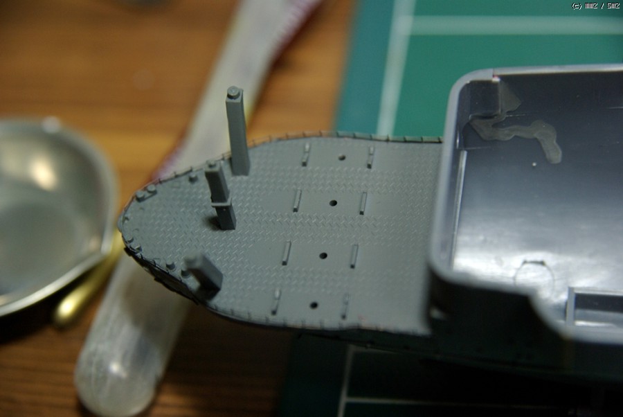 선수 부분에 몰드 되어 있는 앵커체인은 싹 밀어버리고 적당한 크기의 황동체인으로 교체