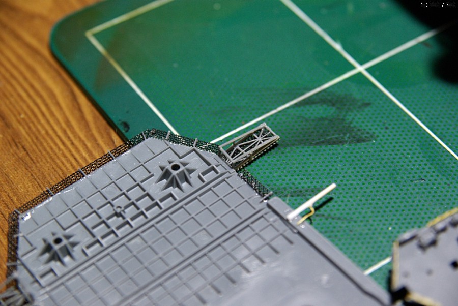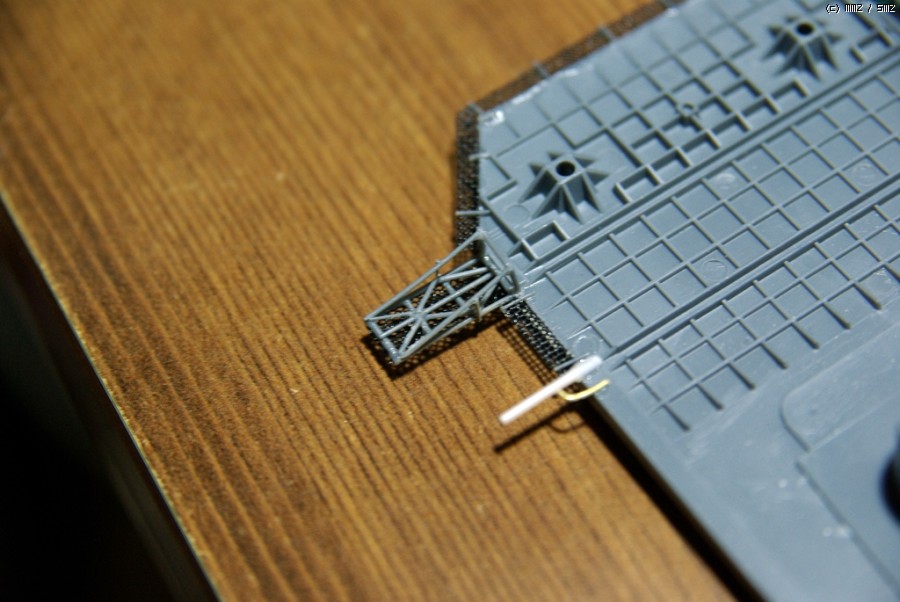 연돌의 잭스테이는 난간 에칭을 잘라서 붙여주고 선체 측면의 잭스테이도 마찬가지로 제작.