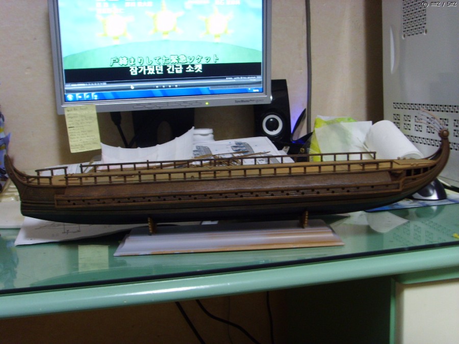 작업 계속중인 그리스 범선입니다. 트로이 영화에 나온것보다 대형군선이더군요. 모형이 맞는지 영화가 맞는지 아니면 바리에이션이 여러개 있던지 그 중 하나라고 생각됩니다.