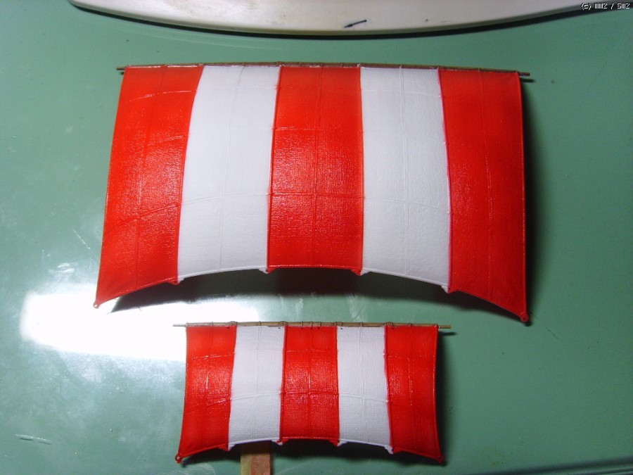 특이하게 프라로 찍혀나온 돛입니다. 덕분에 버큐폼돛이 아니라서 오히려 작업하기 쉽달까요? 거친 천의 질감도 표현해 놨습니다. 이 회사 제품에 점점 흥미가 갑니다.