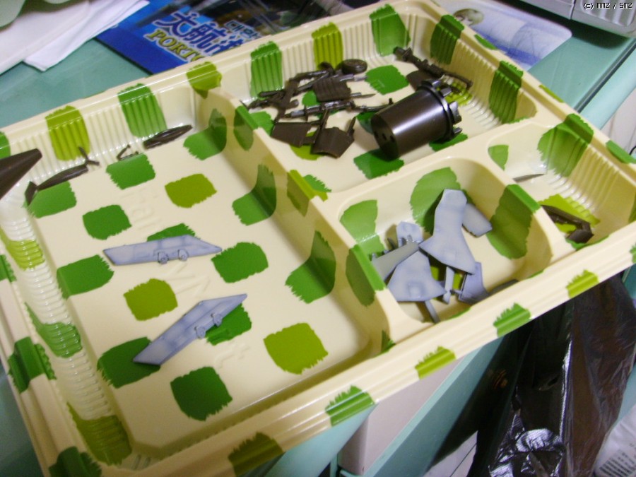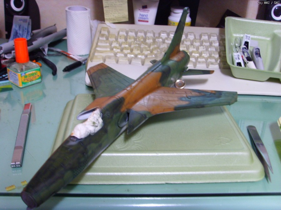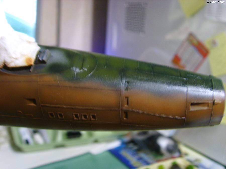 동체 기본도색입니다. 거의 하루가 날아갔네요. 위장무늬가 3종, 하면색이 따로 1종이므로 총 4가지 색이고 거기다 전부 틀린 명암색을 넣었으므로 작업이 2배입니다.