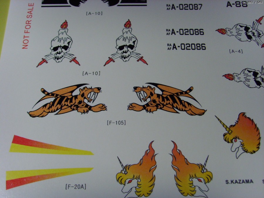 구입한 데칼입니다. 호랑이 마킹만 있으므로 동체의 호랑이 줄무늬와 주익 끝단의 호랑이 무늬는 마스킹해야 하는데 아아, 너무 귀찮네요. 어쨋든 달려봅니다. ㅜㅜ