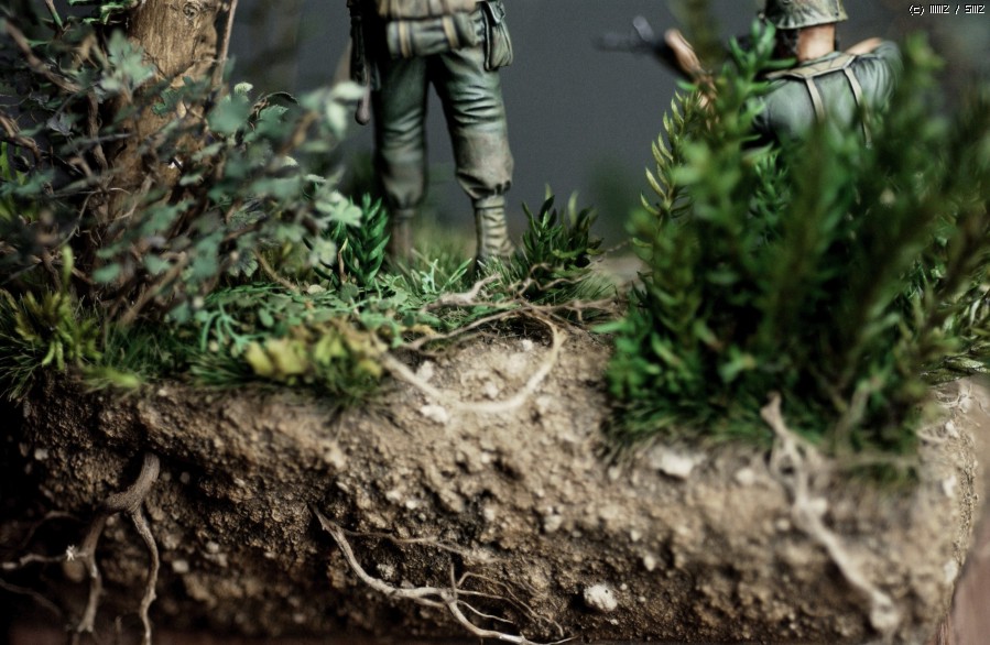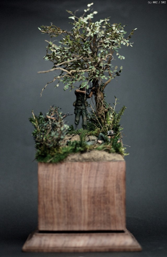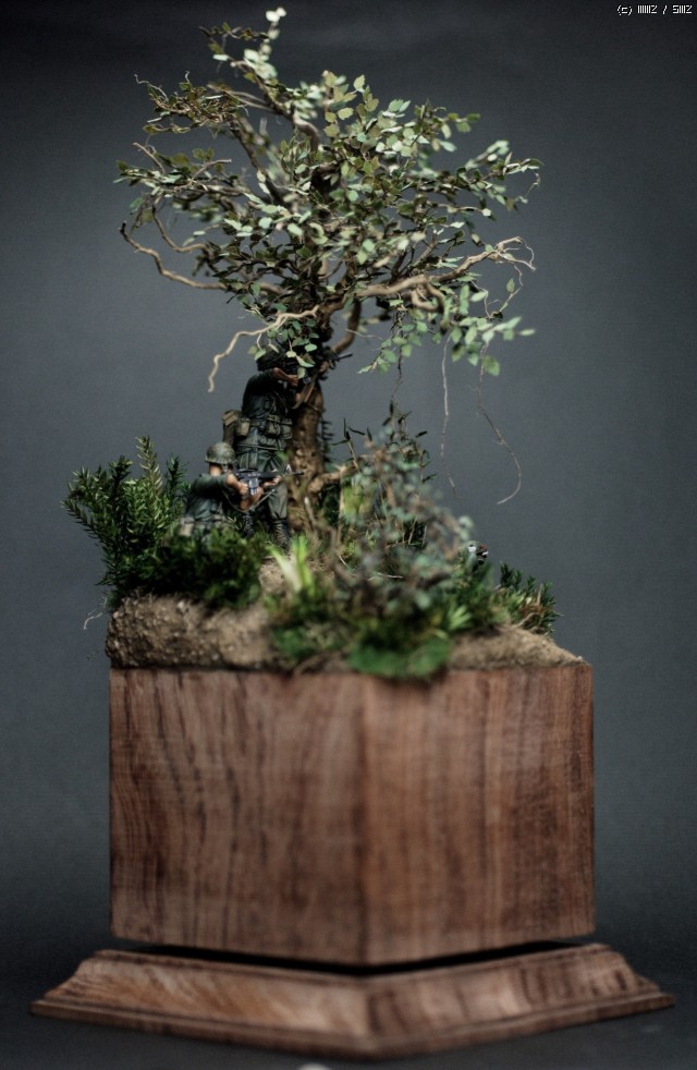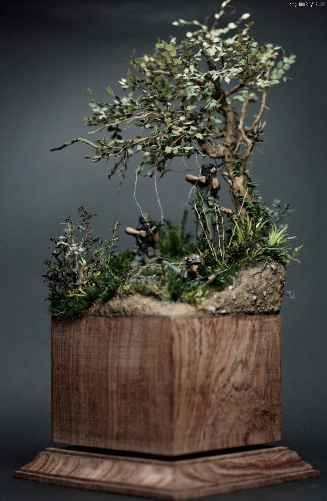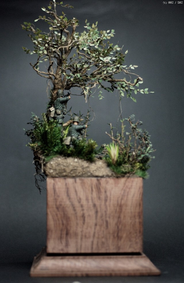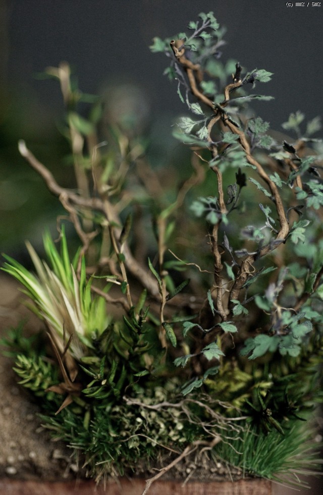 의뢰하신 소장가께선 정글표현을 원하셨는데 베이스의 협소한?! 공간덕분에 (고맙게도..ㅠㅠ) 나무는 한그루정도로 함축시키고 여러가지의 잡풀들로 꾸며봤습니다.