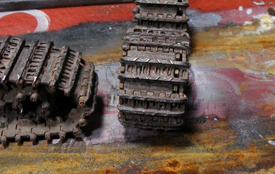 보기륜에 찝혀들어가는 궤도이빨도 좀 갈아서 금속색을 드러내줬습니다.