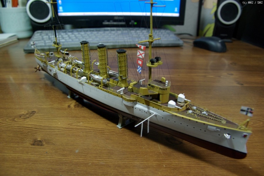선수쪽에 로고는 자료집에서 구한 실제 엠덴 로고를 포토샵으로 손 봐준 뒤, 일반 종이보다 두꺼운 포토용지에 인쇄한뒤 잘라 붙였습니다. 꽤 그럴싸하군요. :-D