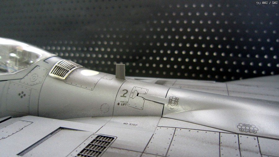 저번 F-18엔 극 웨더링을 했지만 그래도 이 모델은 왠지 더럽히기가 미안 스러워 약간만 해 주었습니다.