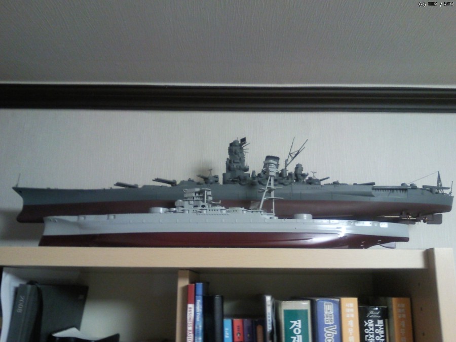 두 배 크기가 비교가 되나요? 애리조나가 야마또 옆에 있으니 꼭 구축함처럼 작아 보이네요