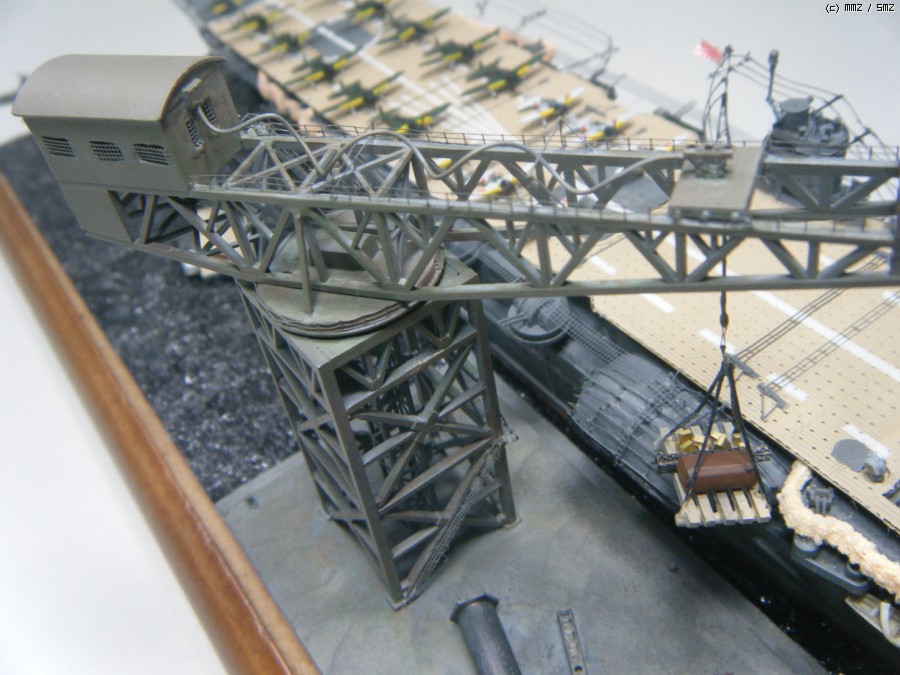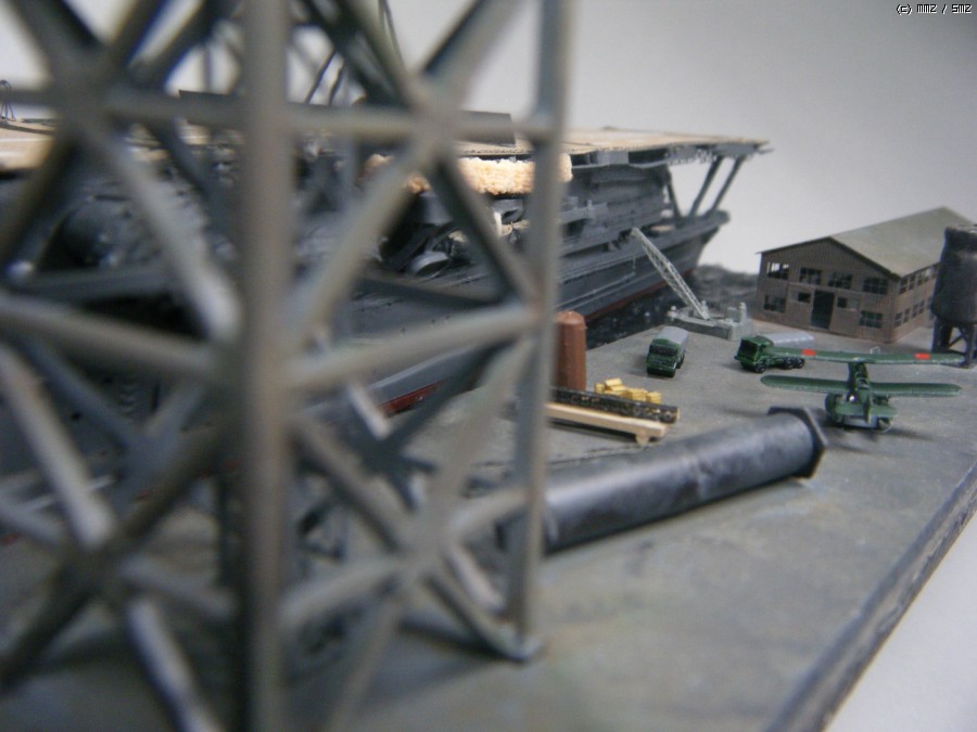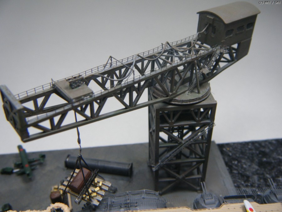 항구의 크레인은 나름대로 오래된 구조물의 모습을 보이려고 웨더링을 했는데...흠...나름대로는 만족합니다. 자세한 자료 사진이 없어서 함선 카페에서 소개된 1/700 크레인 에칭 완성작과 상상력을 사용하여 구성하였습니다. 특히, 그 당시 항구의 자료 사진이 없어서, 고민고민하면서 shipyard를 채워주려고 했는데...제가 봐도 아직도 뭐가 부족한 느낌이네요...