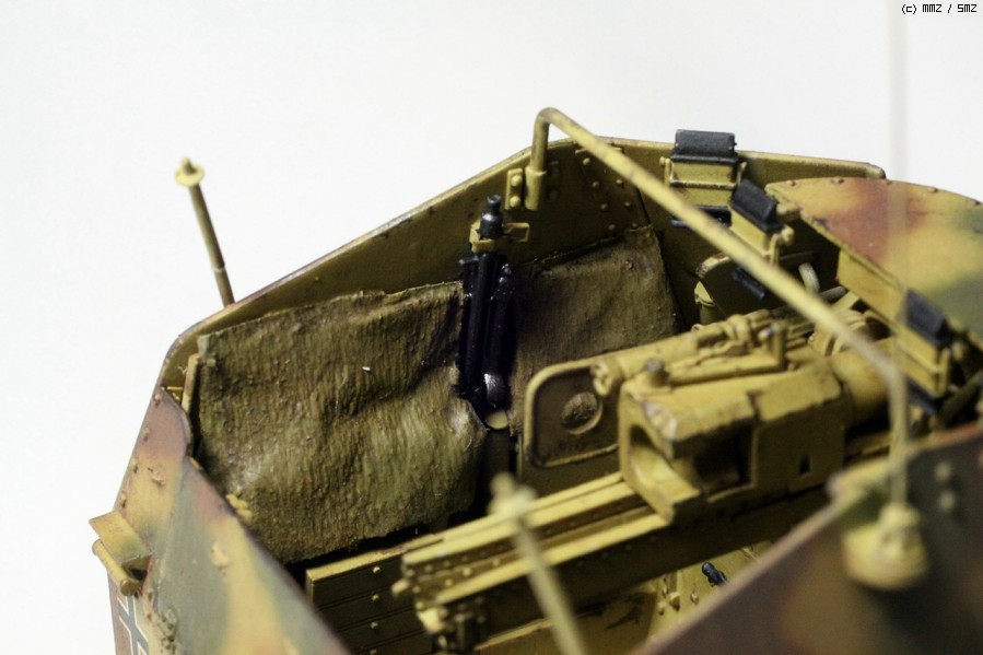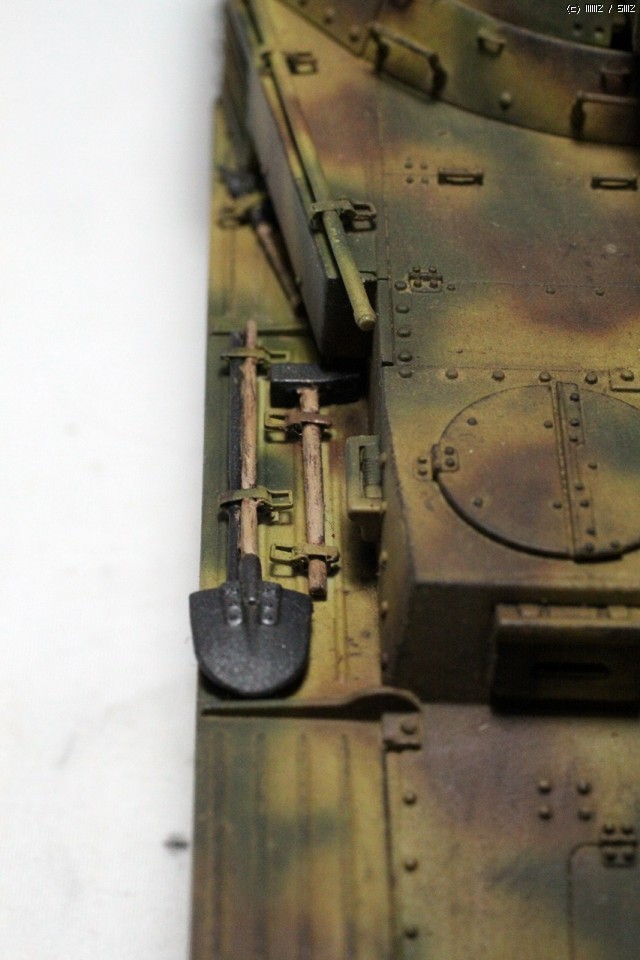 전투실 좌우에 있는 위장망 걸이는 황동선으로 다시 만들어 주었습니다.
