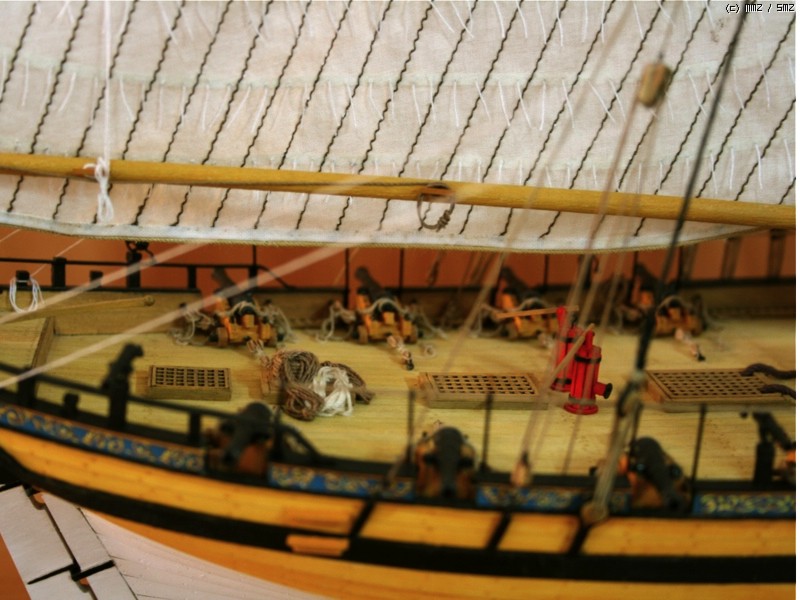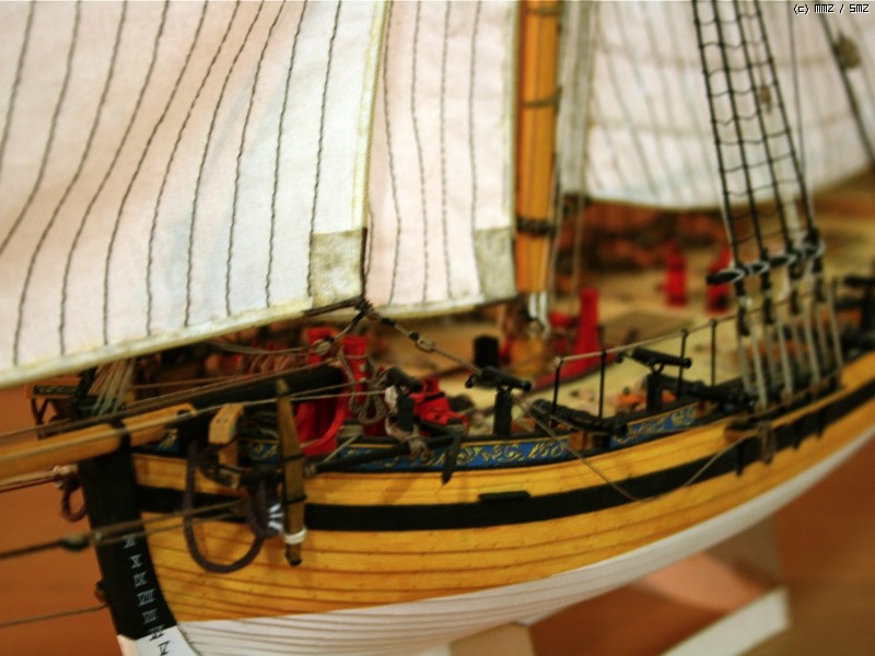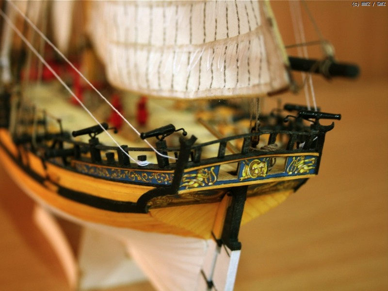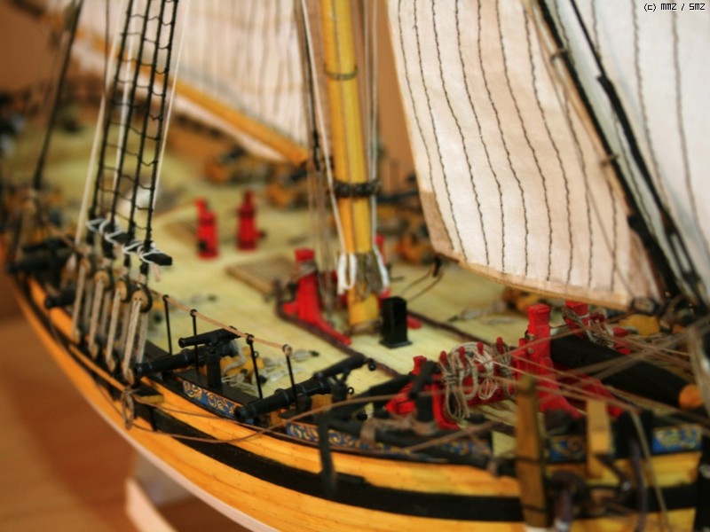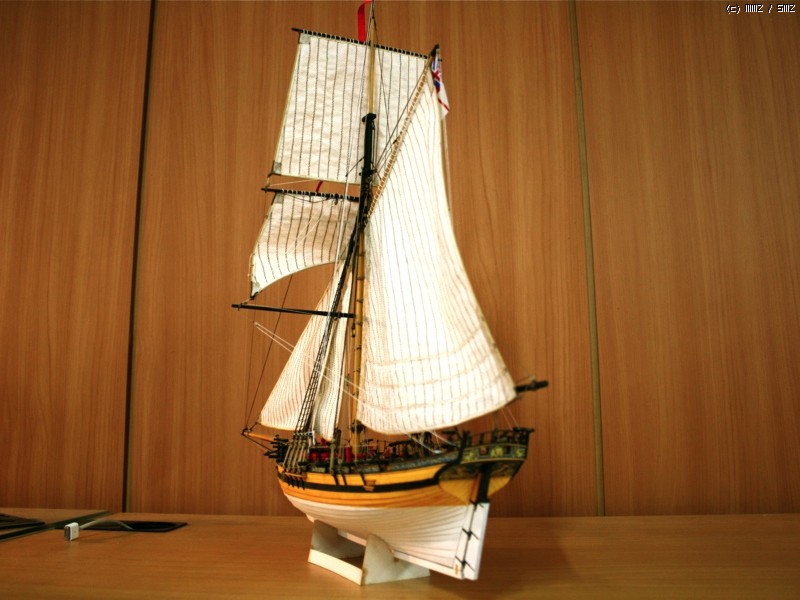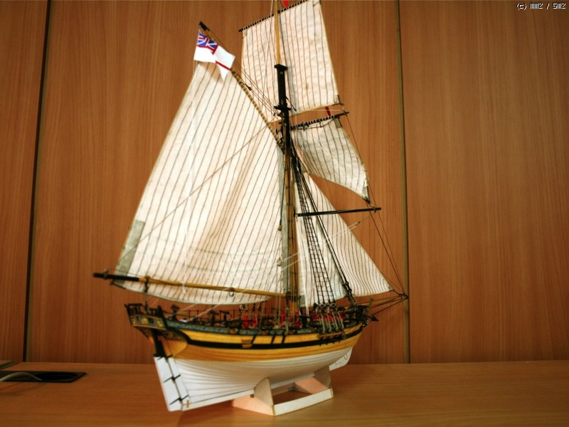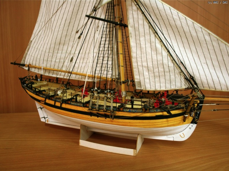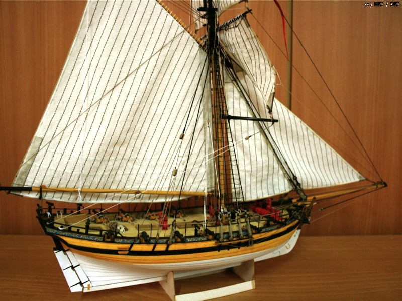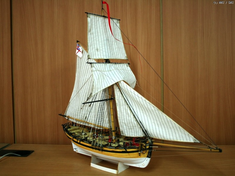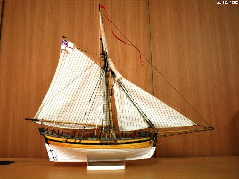 이런 형태의 배를 Naval Cutter라고 하는데 18세기 중반부터 19세기 초반까지 영국에서 사용한 돛대 하나짜리 쾌속범선으로 원래는 밀수꾼들이 즐겨 사용했던 상선이었으나 그 속도와 경쾌한 성능으로 영국해군에서 소형무장선으로 쓰기 시작했습니다. 이 키트의 주인공인 HMS Alert는 1777년 제작되어 도버해협에서 상선의 호위, 해안선 경계임무등을 담당하면서 프랑스의 사략선을 나포하는 등의 활약을 하다 1778년 프랑스 해군에 나포됩니다.