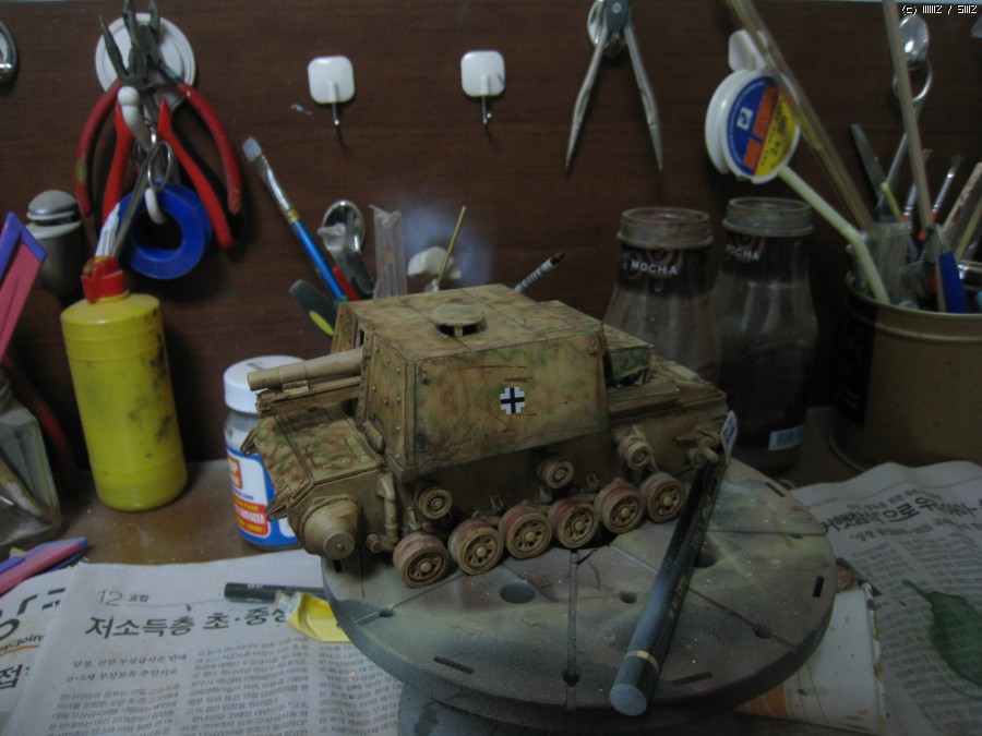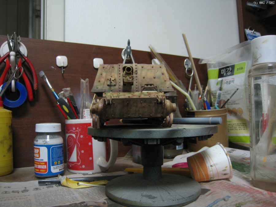 아참 캐터필러는 전에 아카데미4호전차 미조립 완성품을 샀는데 거기서 빌려온것입니다. 사진촬영마치고 다시 옮겨 신기려고하는데 될지 모르겠습니다...