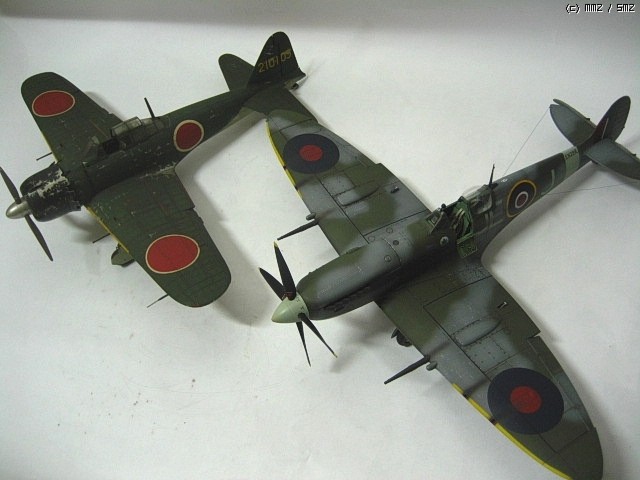 둘다 타미야 제품이고 제로는 예전에 발매되었던 제품이고 스핏은 최근에 발매된 제품입니다,크기는 스핏이 좀더 샤프하게 잘빠졌고 약간 더크네요, 스핏의 실루엣은 정말 끝내줍니다,