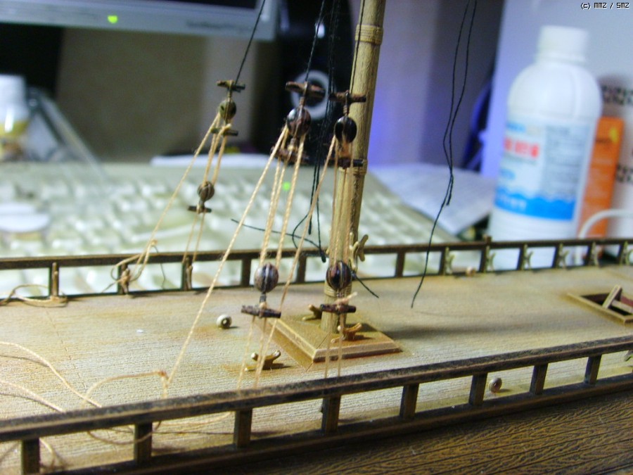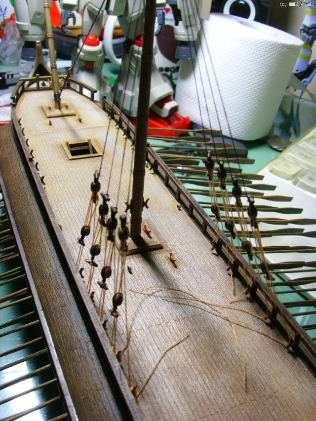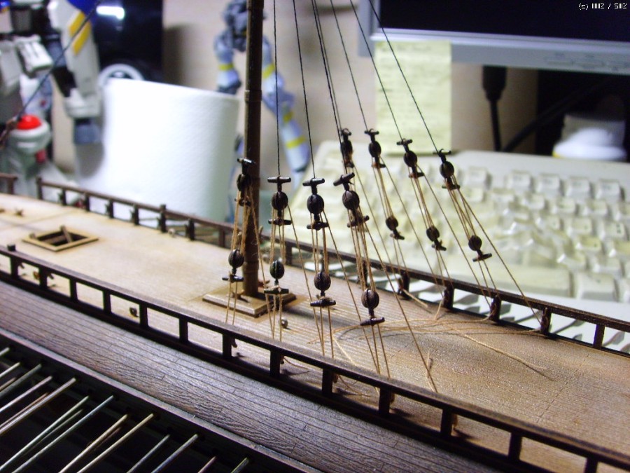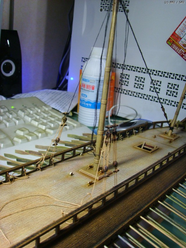 시간 많이 잡아먹은 중앙돛대 리깅작업 후 입니다. 이것도 겨우 1/4정도 한거라 앞으로 노가다는 계속될듯...
