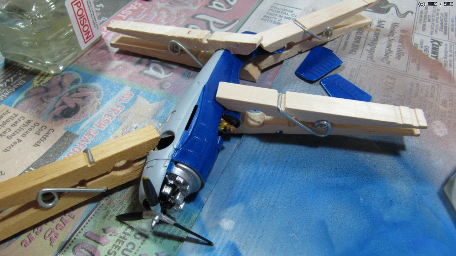 밑칠, 하체, 마스킹 후 상체 순으로 도색 후 동체를 조립하였습니다.