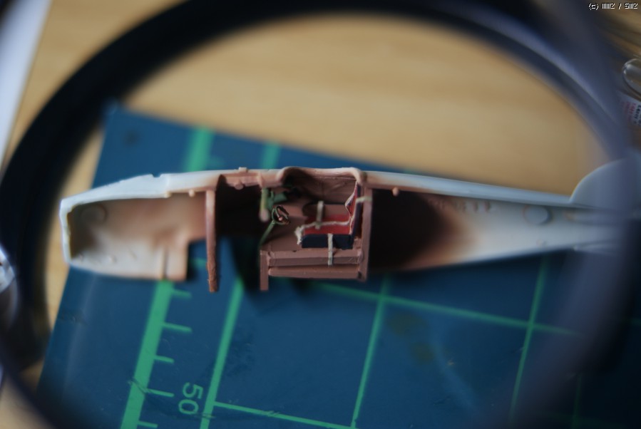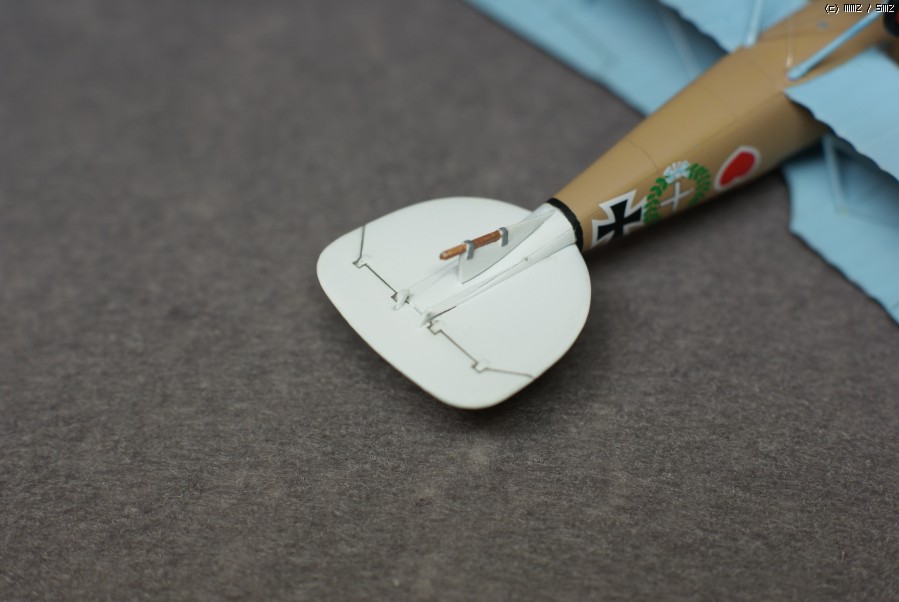 리깅은 0.145mm 낚시줄을 이용하였고, 조종석, 수평미익 방향타 리깅부, 기관총, 조종석 유리창 등은 자작입니다. 이외에 동체에 패널라인이 없어 모두 그어주었습니다.