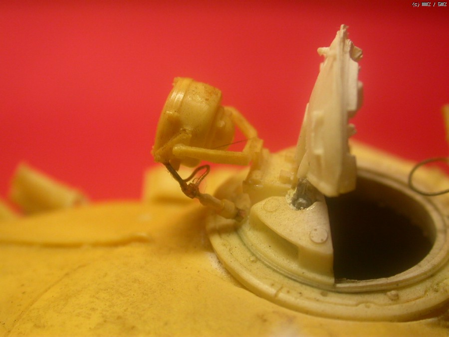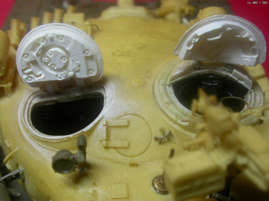 전면 V자 좌측에 원래 있는 조종수 해치를 OPEN해서 열어놓을때 조종수 해치를 받쳐주는 지지대는 간단한 모양이라 추가재현....
