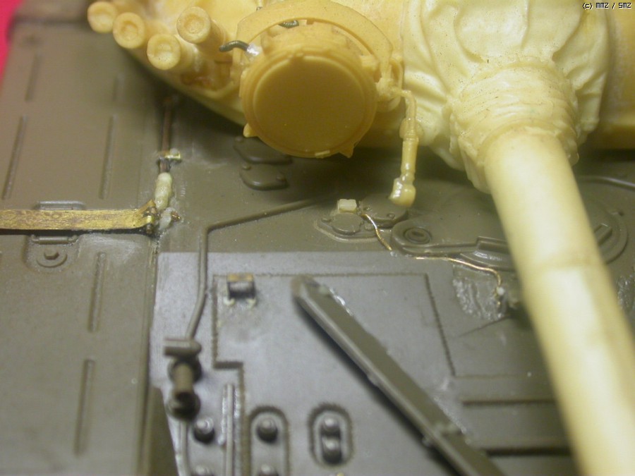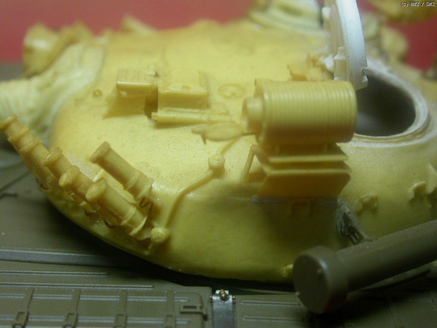 터렛위의 후미등은 지지대에 붙어있는 모양이 ..타미야 키트에서 재현한 모양(위치)과는.. 실차는 좀 다르죠..자료 사진보고 조정해 주었습니다