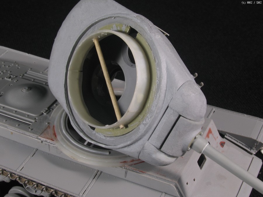 아카데미 슈퍼셔먼의 포탑하부 링을 끼워 넣고 플라판으로 원통 만들고 사이에 이쑤시개로 응응응.....