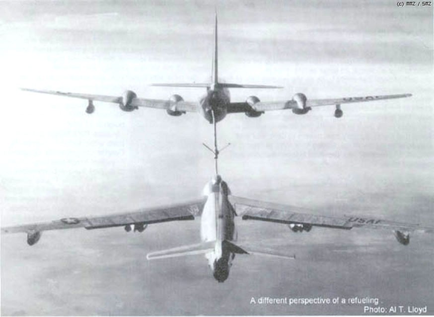 공중 급유 받고 있는 B-47E 스트라토젯은 보잉사에서 개발하여 50년대 미전략공군(SAC)에서 사용한 주 핵투발 수단 중 하나입니다.