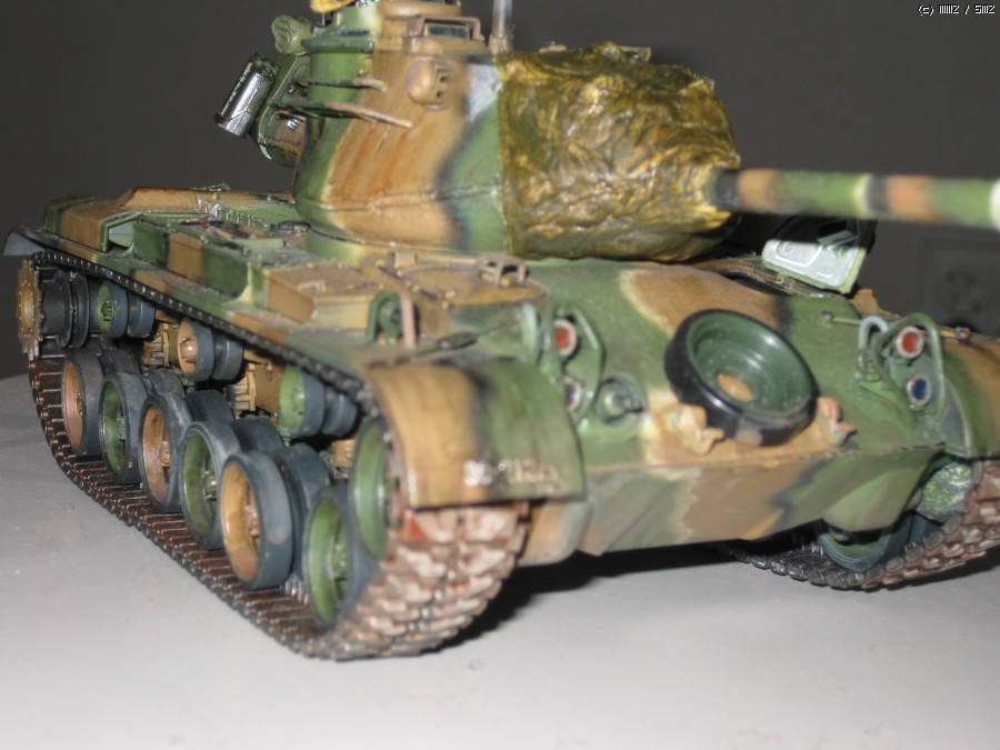 M-47 전차입니다. 지금은 거의 모두 퇴역했을 거라고 생각합니다. 군생활하면서 늘 보던 전차라(81년 4월 101보 군번) 옛생각하면서 한번 만들어 보았습니다. 레벨 제품입니다. 이 물건 구하기 힘들더군요. 한참 찾아 보다가 올해 4월말쯤 용산 새?나 모형점에서 용케 구했을 때 아이처럼 기뻐했습니다. 품질요? 썩 좋습니다. 다만 킷트 표면이 너무 매끄럽다는 것과 방수캔버스가 없다는 게 좀 아쉽습니다. 그래서 순접으로 문질러 표면질감을 만들었고, 런너 늘여 용접선 표현하고, 방수포는 에폭시퍼티로 자작했습니다. 그러나 터무니없이 과장된 것 같습니다. 석달 정도 걸려 쉬엄쉬엄 만들었는데, 영 신통치 안군요.