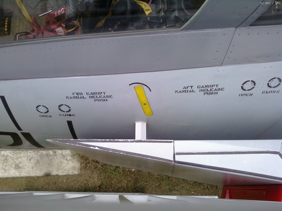 음..전방 캐노피를 열 수 있는 레버...'PUSH'라고 되어있길래 과감히 눌렀습니다.