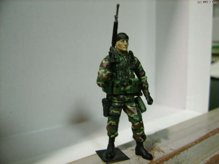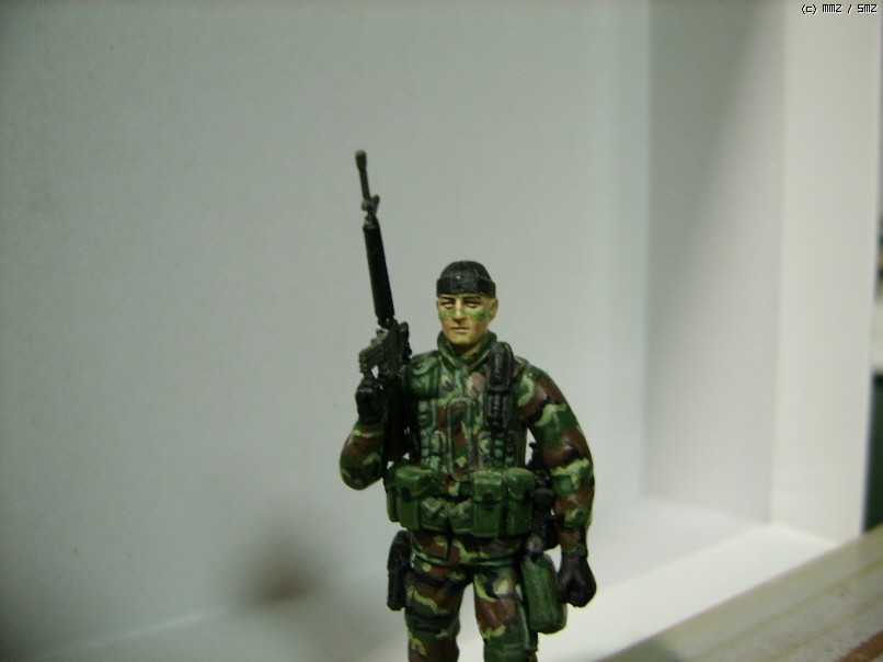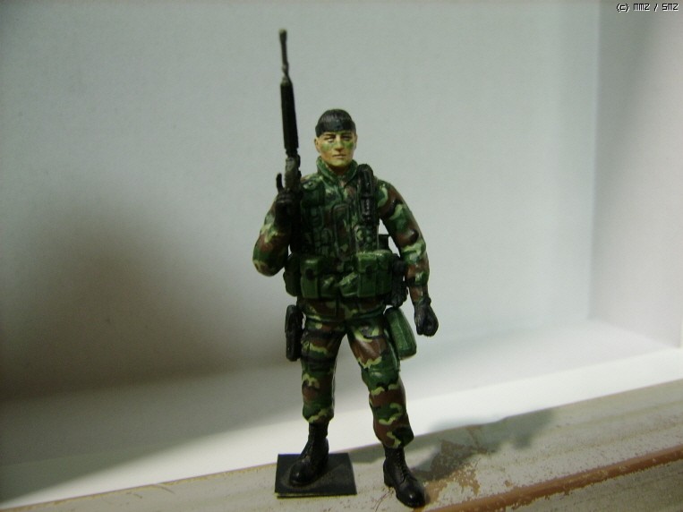 예전에 취미가 10호에 나왔던 얼굴 색칠방법과 우드랜드 BDU 색칠방법을 참고해서 도색을 했습니다.(그게 바탕이 되다보니, 항상 그 책에 나온 방법을 고수하게 되는데 문제는 그 이상의 실력발전이 없다는거죠. 그래도 그 책덕분에 정말 많이 배웠다는 거..)