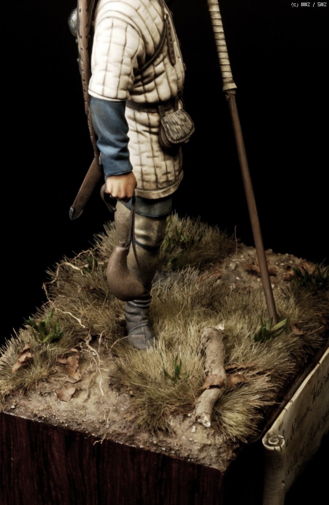 왼손에 수통은 동물의 가죽으로만든 수통을 표현하고자 슈퍼스컬피와 납판을 이용해 간단히 만들어주었고 도색.
