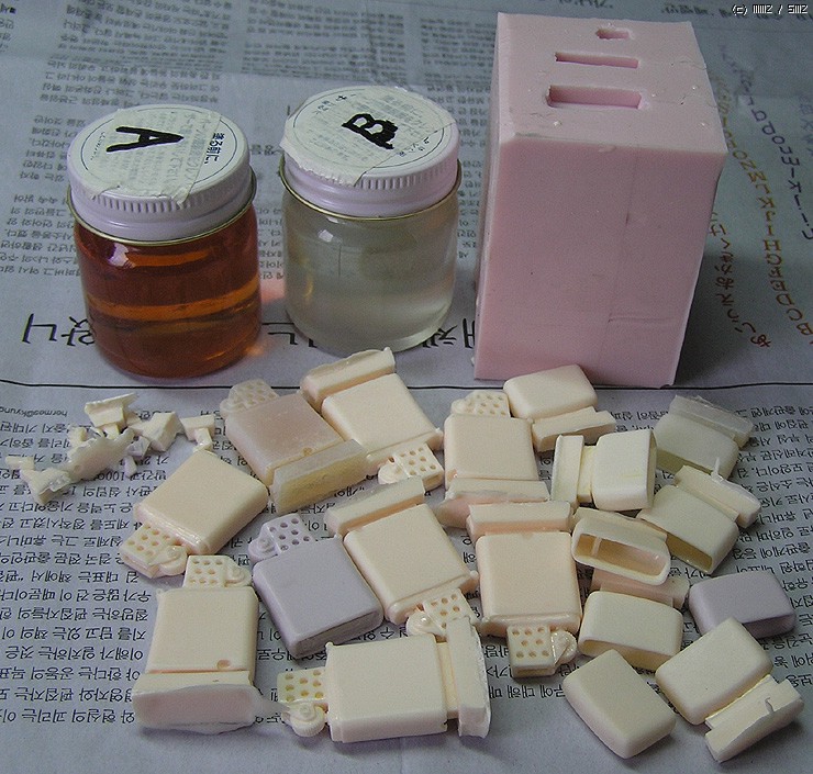 자작한 지포를 실리콘으로 틀을 만든 뒤, 총 10개를 레진 수지로 복제했습니다.
