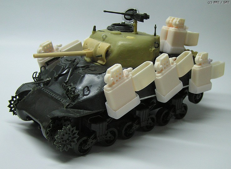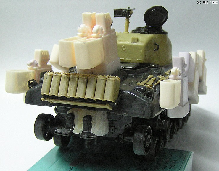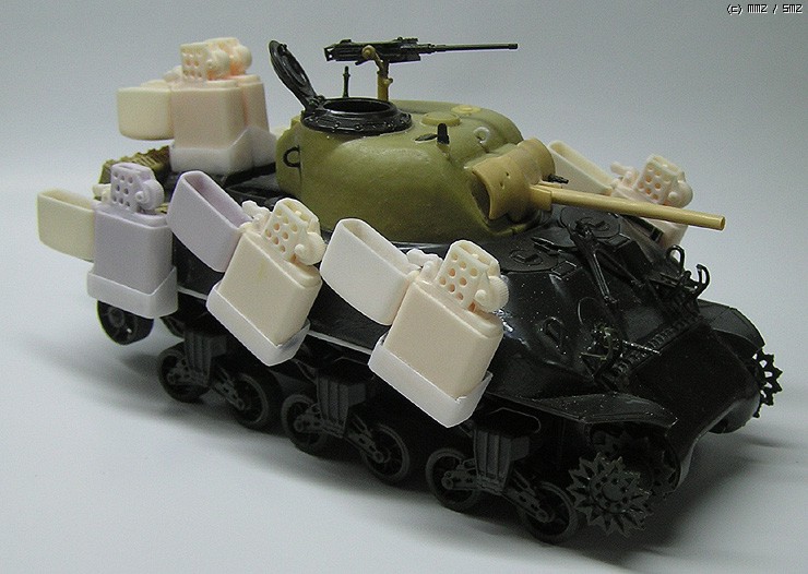베이스 키트는 포탑 부품을 분실하고 차체만 덩그러니 남아 있던 이탈레리 M4A1과 ...또한 포탑만 남아서 뒹굴던 벨린덴제 75mm 포 장착형 초기 셔먼 포탑입니다. 그 나마도 부속이 제대로 없어서 스크랩 박스에서 찾은 여러 부품을 섞었습니다.