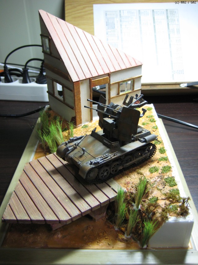 1호전차를 개조한 것을 올려 봤습니다. 건물과 다리는 우드락으로 만들었습니다.