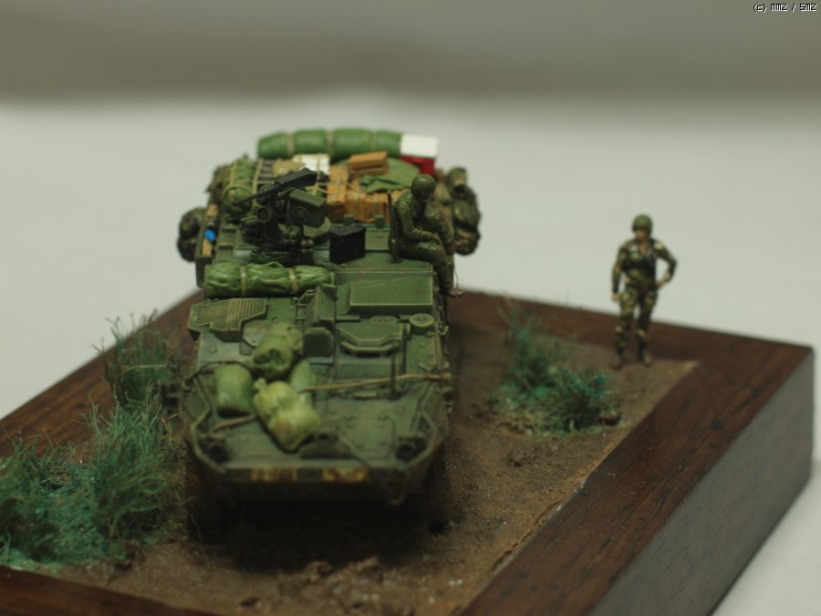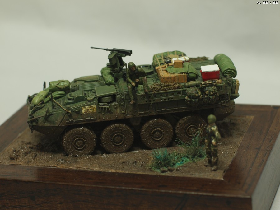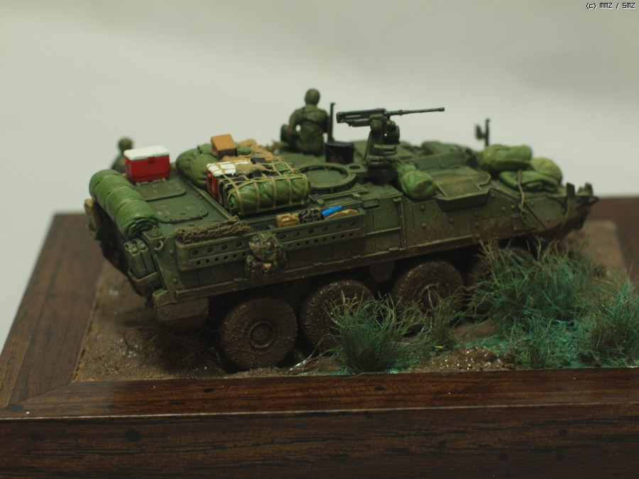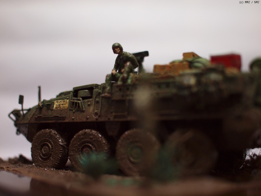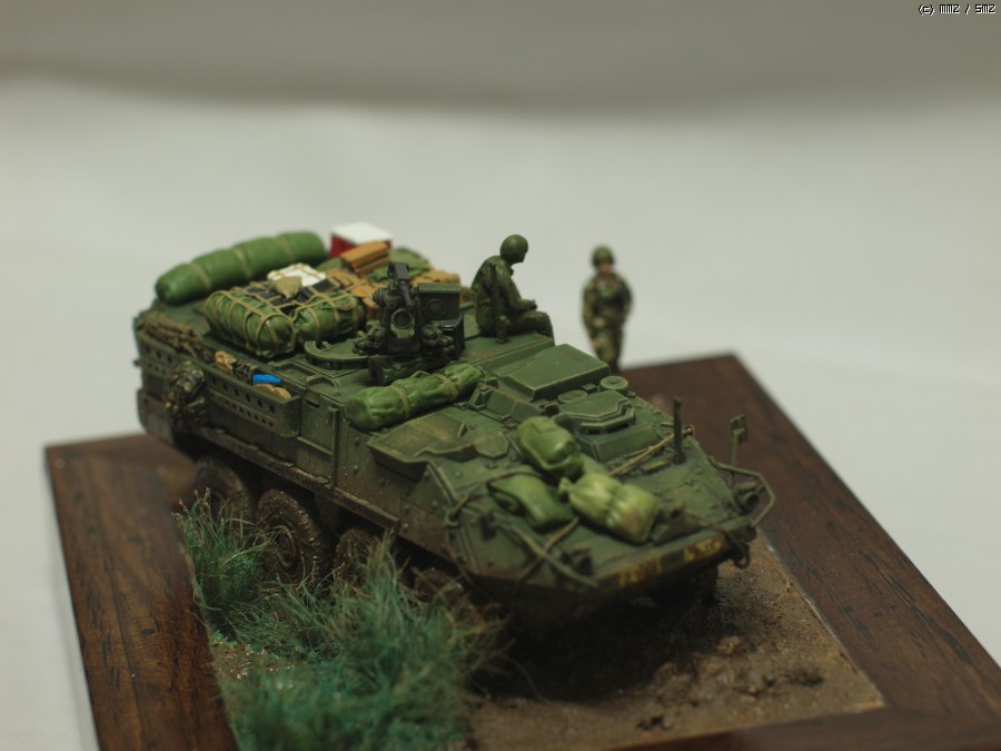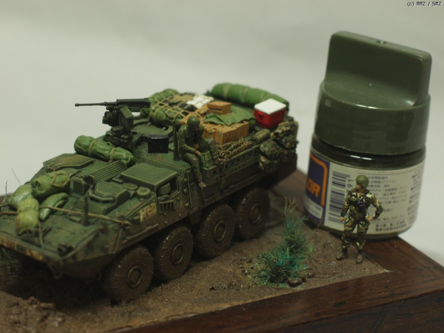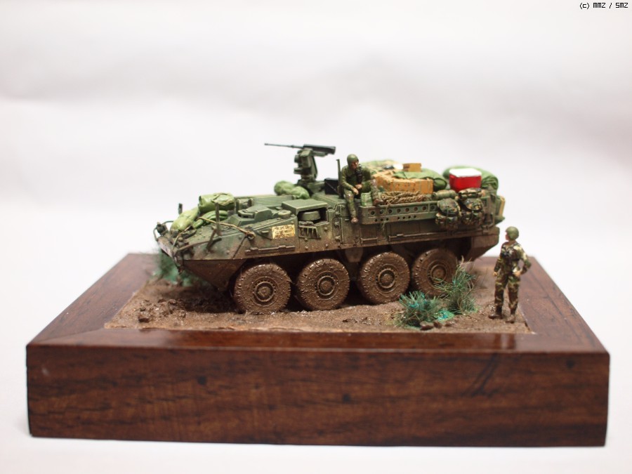 아카데미 1/72 M1126 스트라이커 작업입니다. 최초 킷만 가조후 먼가 허전해서 간단하게 비넷트작업;; 베이스는 언제나 즐겨쓰는 천원짜리 사진 액자를 이용해서 지면 작업을 했습니다.
