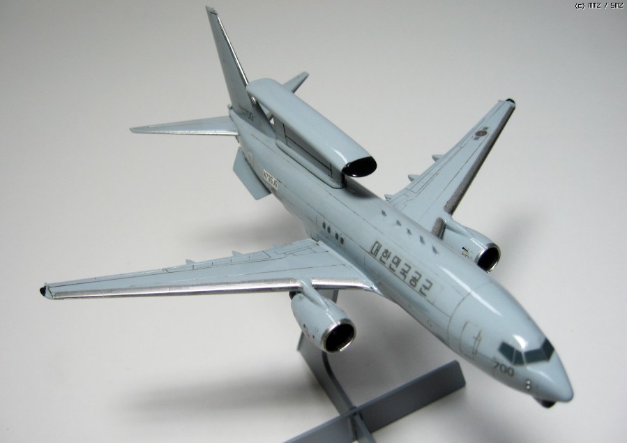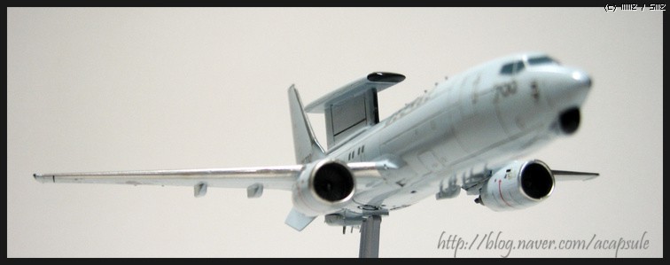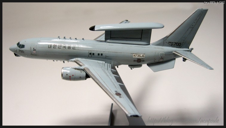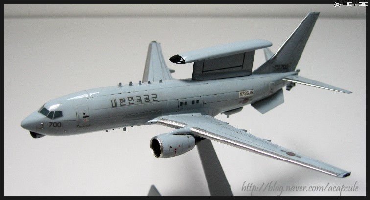 ^^ F-5A형 제작하다가 갑자기 만들어봐야겠다고 집어든 한국공군 조기경보기 피스아이입니다...1/200 하세가와 B737-700기체를 기초로 개수했습니다...쉽게 제작하고 끝낼라고 했는데..작은 기체만들어본 경험이 없는지라 여기저기 난리가 아닙니다...ㅜㅜ; 기회가 된다면 144나 72기체로 다시 만들어볼 예정입니다...이번 기체는 연습이라 생각하기로 했구요...우선 데칼자작은 스케일조정 실패였구요..약 10-20%정도 약간 크게 되었습니다...그리고 패널라인 굵기조절도 아쉽구요...웨더링 하지말걸 그랬나싶구요...ㅜㅜ 여기저기 후회되네여...그렇지만 다음제작에 필요한 노하우는 ㅎㅎ 우선 수직미익사이즈 조절, 주익 끝단 레이더 장착, 노즈하단부 레이더장착, 꼬리하단 레이더 장착, 동체 하단부 레이돔장착, 각종 센서 장착 등 생각보다 개수할 부분이 많습니다...이번에 생략한 부분은 엔진부분 개수인데 너무 작아서...좀 더 큰 스케일엔 가능하겠지요 ^^..그럼 허접 사진 나갑니다...이쁘게 봐주시고 추석 잘보내세요~