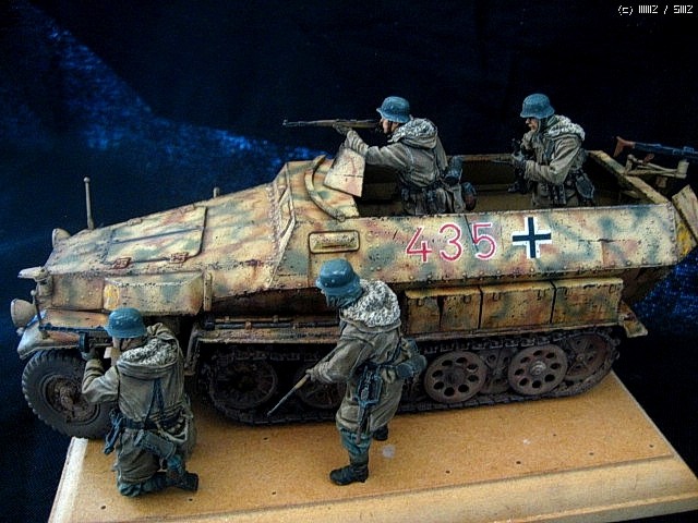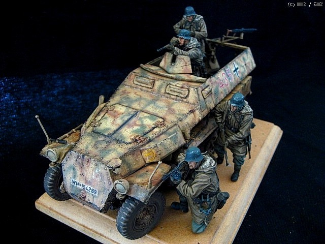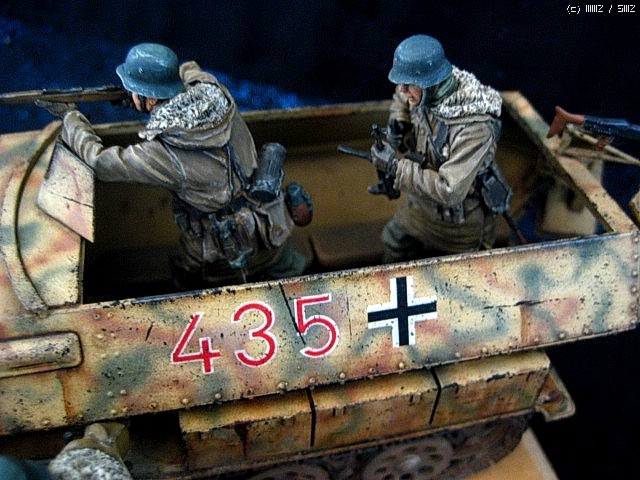 킷은타미야 제품입니다, 의뢰작이고 도색은 험브럴에 유화 워싱입니다 이외 미그피그먼트를 사용 했습니다, 위장무늬는 의뢰인의 부탁으로 3차례수정된 결과 입니다, 의뢰인깨서 요구하는 위장무늬 와는 거리가 좀 먼 무늬라 생각됩니다,인형은 탱크모델 제품이고 촬영용입니다,킷에 포함되어있는 인형은 아직 미제작입니다, 금형이 오래된 제품이라 자신은 없네요,,,