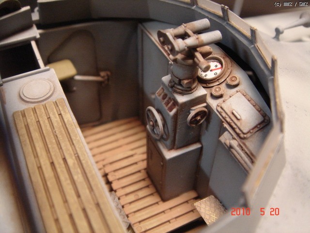 고무보트는 세가지 톤의 회색으로 도색했습니다. 가운데 비치는 부분은 빛이 반사된 것이 아니고 실제로 옅은 색을 뿌려 준겁니다. 스케일이 크니까 가능한 시도입니다. 역시 에어브러쉬 프리핸드 입니다.