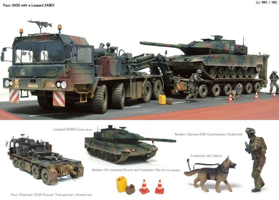 FAUN SLT56 과 LEOPARD 2A6EX 로 구성된 디오라마입니다.