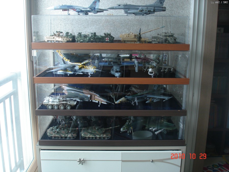 1:32비행기 두대에 1:48비행기 한대들어가고 그사이에 전차를 끼워넣습니다. 전차나 장갑차는 10대이상은 충분히들어갑니다. 먼지안들어가는건 좋습니다.