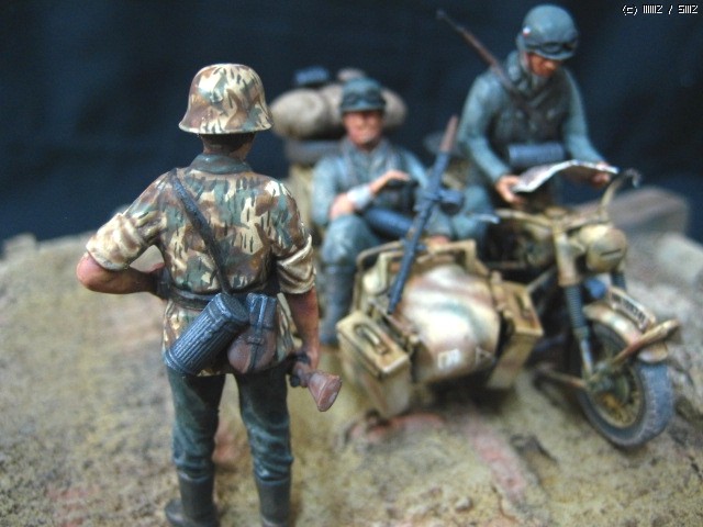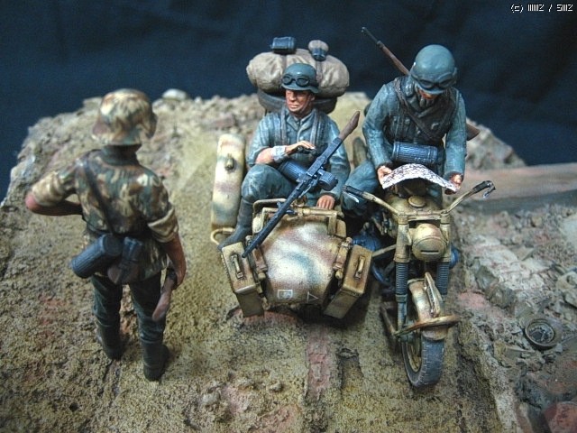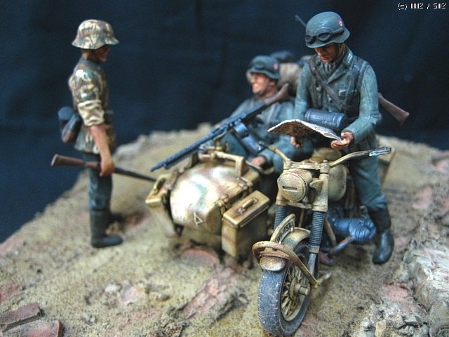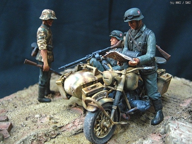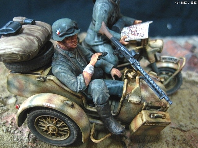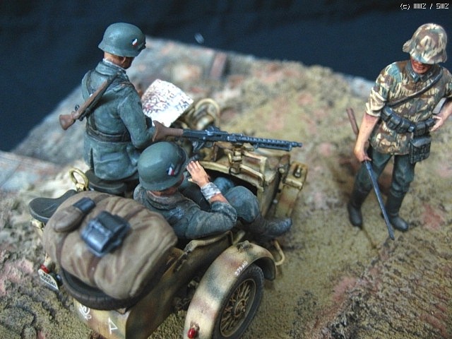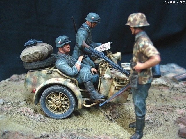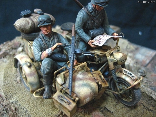 이타렐리 r-75사이드카 입니다, 의뢰작입니다, 도색은 험브럴이고 유화 워싱 입니다,