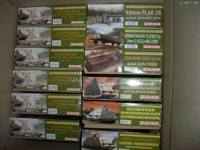 제 수집품중에 1/35 아닌것이 여러개 눈에 띄는데 미국 이베이에 가격이 착하게 나와 앞뒤 안보고 산게 대부분입니다. 독일 레벨제품은 제가 지금 독일에 거주하기에 가격면에서 잇점이 있어서 주로 세일칠때 산거고요. 중복 구입한 아이템도 여러개 눈에 띄는데 특히나 드래곤 6069 화차가 6개씩이나 되네요. ;; 한때 이놈에 필이 꽂혔었는데 이베이에서 씨가 말라버려서 구하기가 너무 힘들다보니 쓸데없는 오기가 생겨 기회가 닿을때 마다 사다보니 어느새 6개나 되더군요. 그런데 얼마전에 싸이버하비로 재판이 되어 좀 맥이 빠졌더랬습니다. 이후론 절대 같은 제품은 한개 이상 안 삽니다.