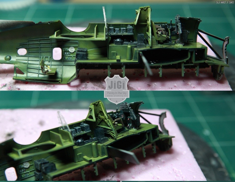 설명서에는 동체 내부색이 두 파트로 나누어집니다. 락카 27로 칠하는 부분과 314로 칠해야하는 부분이 있지만 걍~~~조색한 색으로 통일^^...