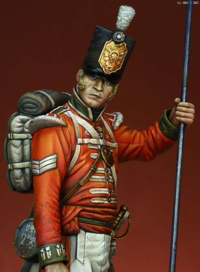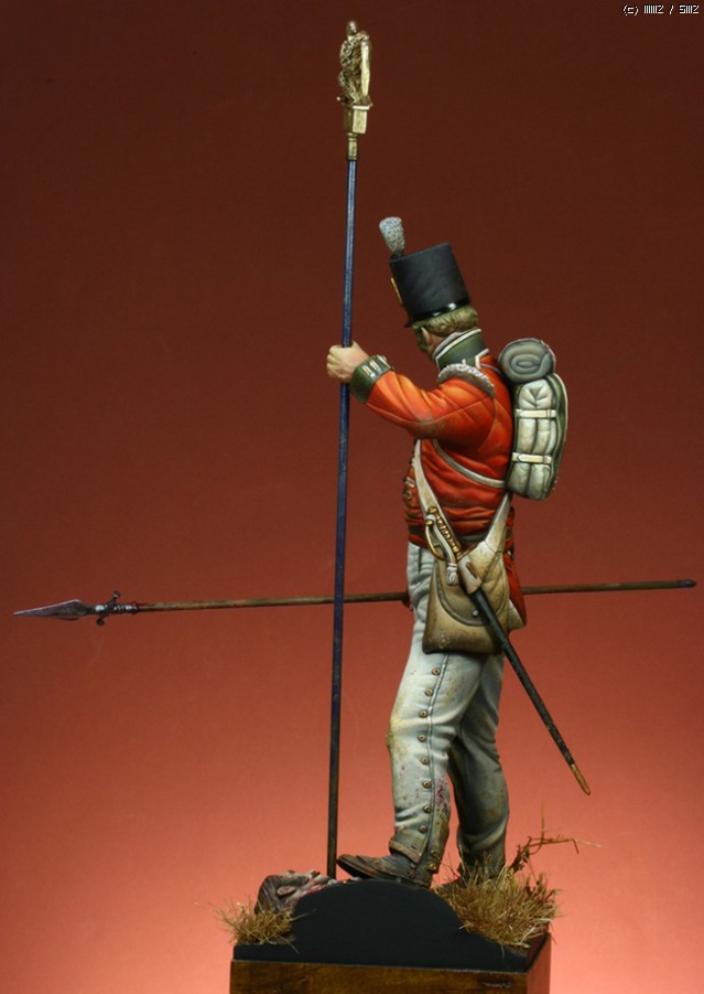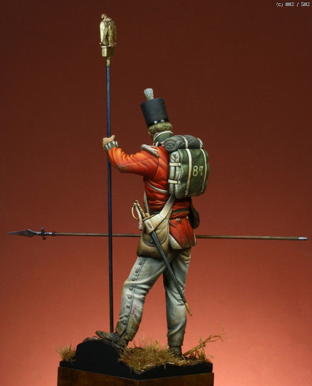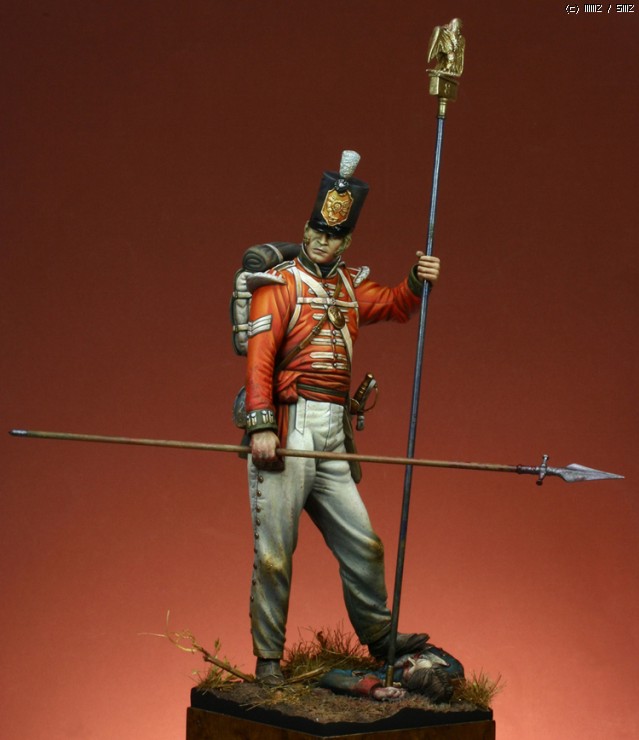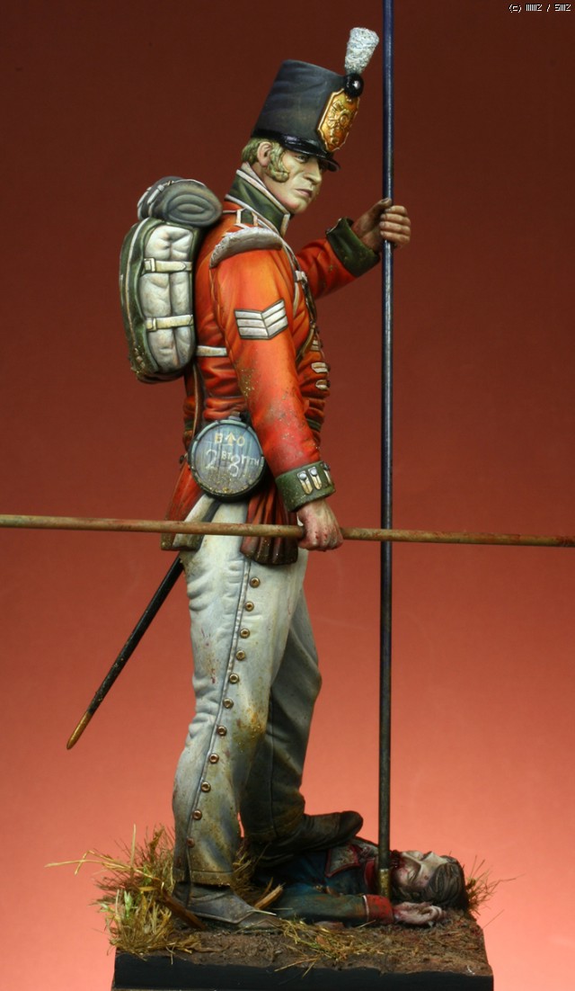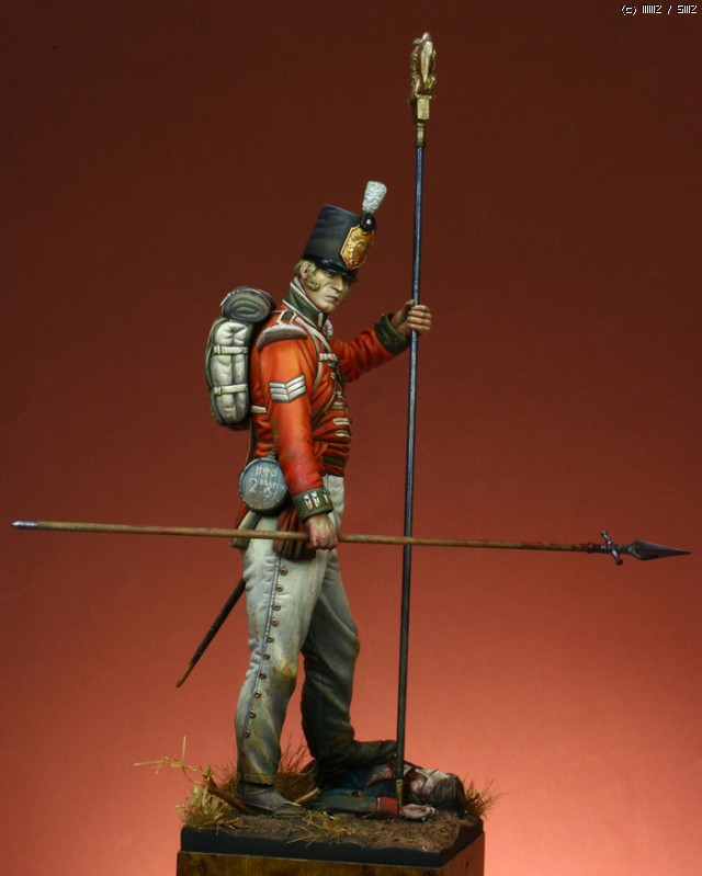 가운데에 두개의 창을 들고서 프랑스병사를 밟고있는 사람이 영국군 Masterson이란 사람인데 왼손에 들고있는 독수리 창은 프랑스군으로부터 빼았은것입니다. 제가 이것을 페인팅할 당시에는 관련 역사에 대해 좀 공부를 했었는데 지금와서 설명을 드리려니 잘 기억이 안나네요 ㅎㅎ 전체적인 포즈는 이 Masterson이란 사람에 대해 그려진 삽화를 보고 거의 똑같이 만든것입니다.
