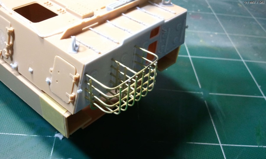포탑 바스켓은 황동선을 지그에 맞게 접어서 사용하게 되어 있는데, 설명서대로만 차근차근 따라하면 쉽게 진행할 수 있도록 지그가 잘 만들어져 있습니다. 저는 에칭조립하다가 실수를 해서 본의아니게 티슈를 접어 모포처럼 눈가림을 하였습니다 ^^