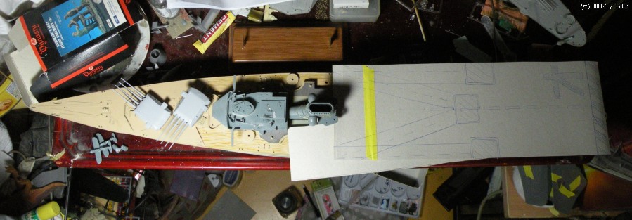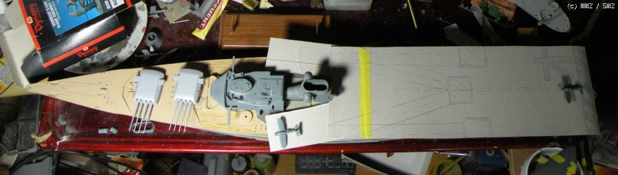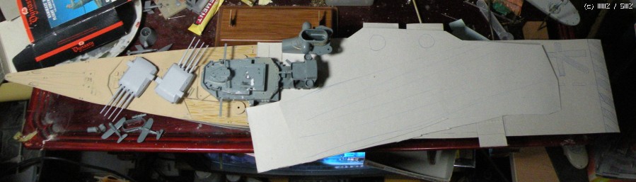 4안입니다. 주함교까지 싹 밀고 항모갑판을 연장했습니다. 주포 앙각을 위해 갑판이 뾰족해졌네요.