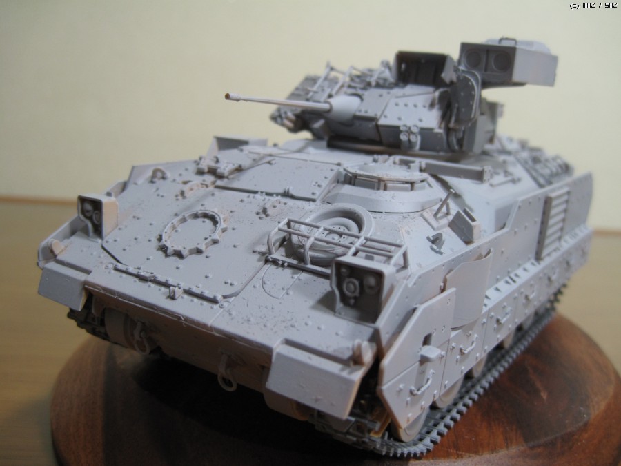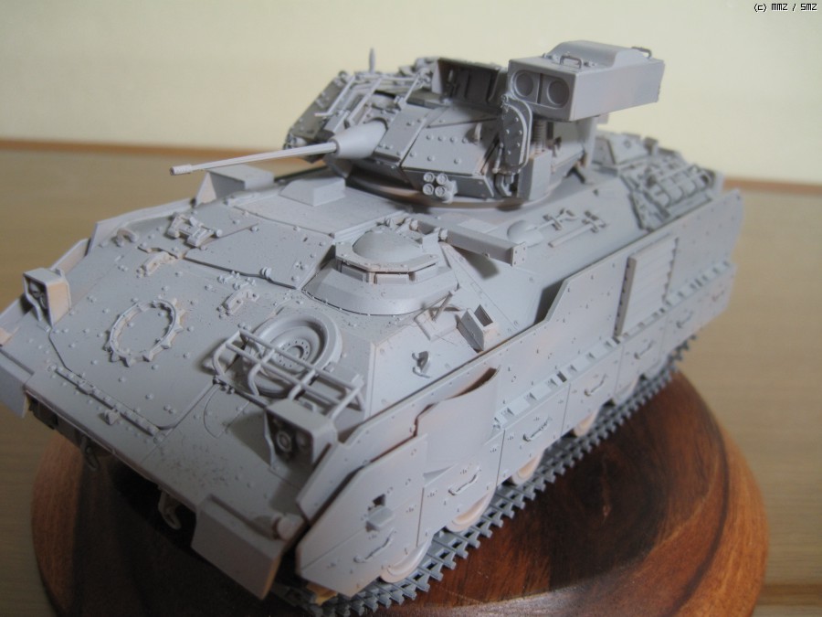 안녕하세요.아카데미에서 오래전에 나온 브래들리 이라크 2003버젼을 조립하고 위에 서페이서를 뿌려보았습니다. 서페이서는 SMP에서 나온 진회색입니다. 군제서페이서만 쓰다가 처음 써보는 것인데, 나름 만족스럽습니다. 가격은 거의 같은데 용량이 거의 3배에 가깝군요. 락카신너도 동사의 것을 사용하였는데, 군제보다 이상하게 단내가 좀더 납니다.