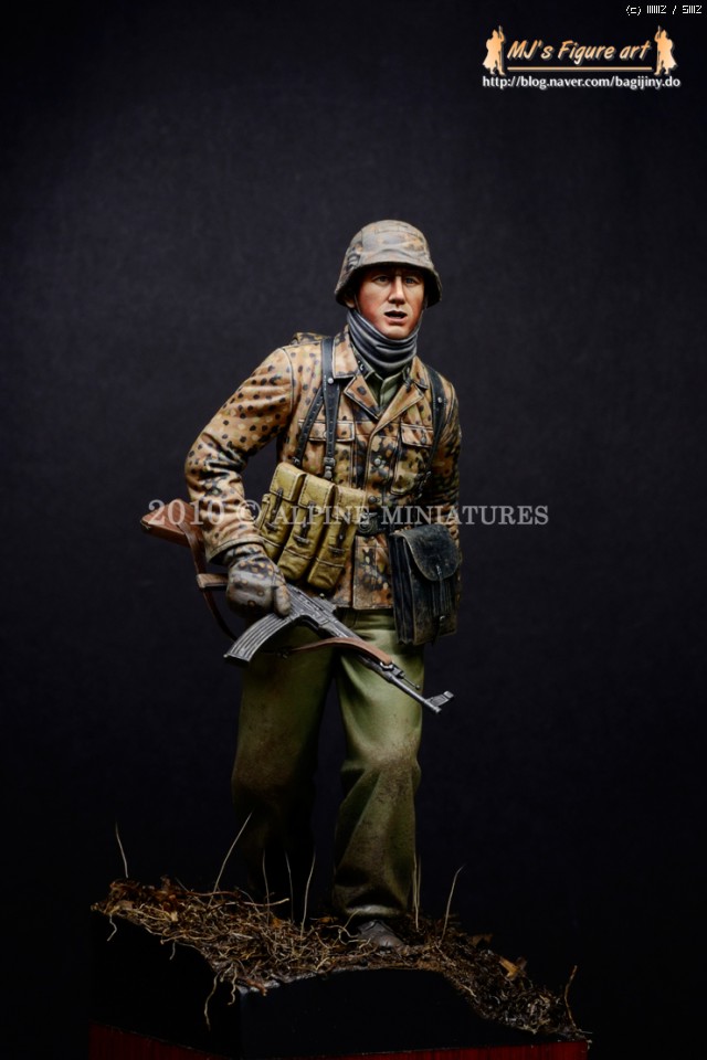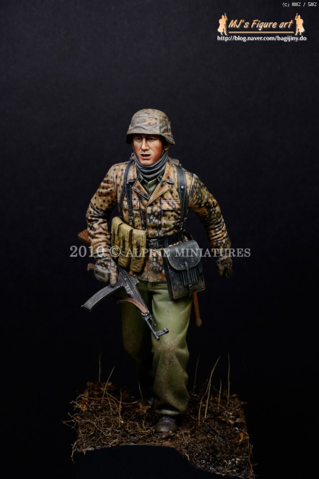 이번달 초에 발매된 알파인 미니어쳐사의 신제품 박스아트를 위해 작업했던 1/16 피규어에 약간의 지면작업 및 얼굴부위에 웨더링을 조금 더 더해서 마무리 지었습니다.
